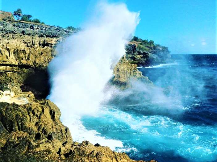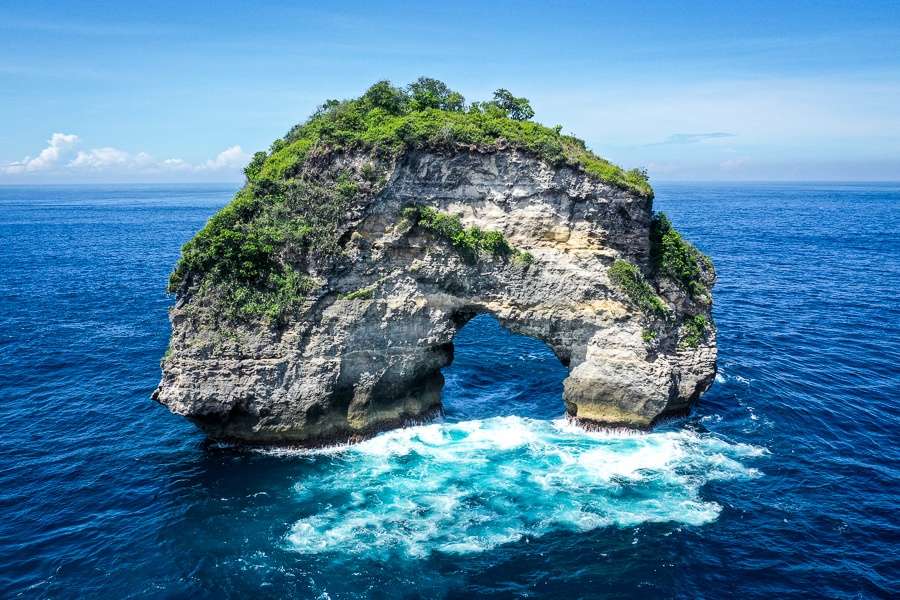 Broken beach or commonly known as pasih uug, the word uug means broken in Balinese. This very famous beach is located in Banjar Sumpang, Bunga Mekar Village, Nusa Penida District, Klungkung Regency, Bali Province. Uniquely, there is a hole in the middle of a 200 meter long coastal cliff. This beach is very beautiful thanks to the very high cliffs.
