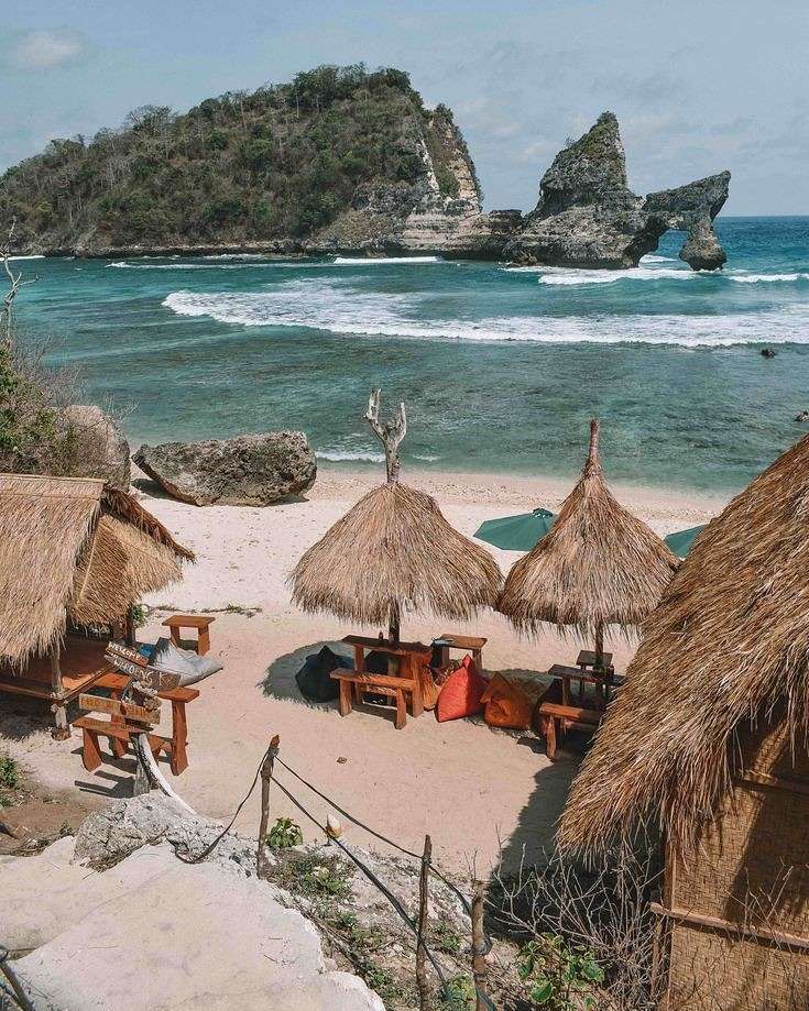 Atuh Beach is a beach located in the eastern area of Nusa Penida, is a new tourist spot that is very popular in Nusa Penida because this beach offers natural beauty with clear water and the atmosphere of the beach that surrounds the cliffs adds to this beauty. beach. Atuh Beach is perfect for swimming with its white sand that makes the swimming atmosphere even more beautiful. To reach the beach location or can also go down the stairs that have been provided, it takes good stamina to be able to go down the road to the beach. No wonder this beach is very popular among domestic and foreign tourists because this beach is suitable for those who want to enjoy a quiet beach atmosphere, not crowded and the scenery around the beach is beautiful.